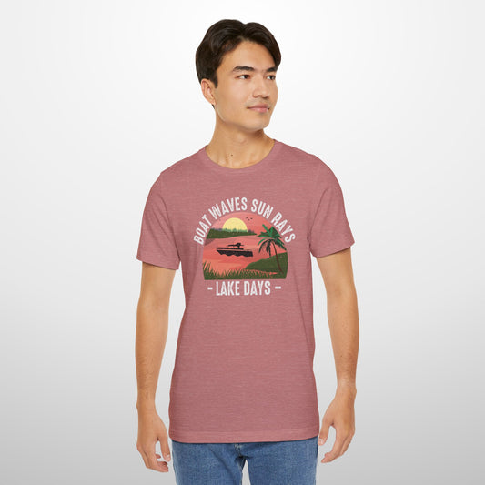 Boat Waves Sun Rays Lake Days T-Shirt